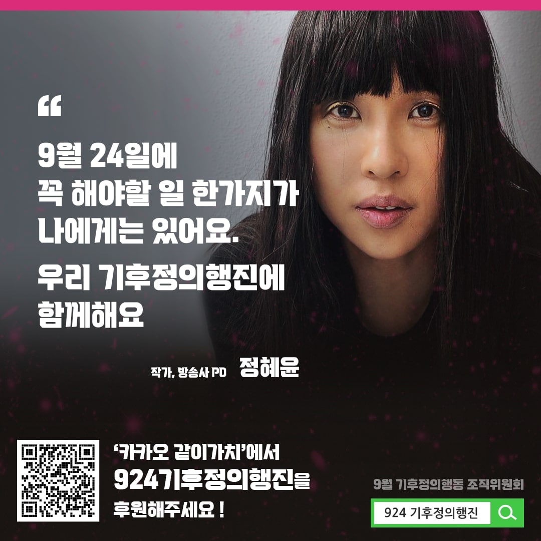 작가이자 방송PD #정혜윤 님이 여러분을 924 기후정의행진에 초대합니다😎