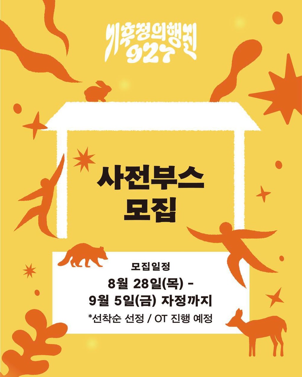 광장에서 울려 퍼질 당신의 이야기를 기다립니다! 노래 🎸, 춤 💃, 발언 🗣, 시 낭독 ✍️ 등.. 원하는 방식으로 자유롭게 광장을 채워주세요. 🎙️ 모집 기간 : 9월 18일